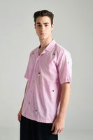 This rosy shirt features delicate radish embroidery appliquéd on fine cotton and is handcrafted in rural India. Reflecting authentic artisanal techniques, it showcases hand-stitched buttonholes, delicate hemming, and fabric scrap buttons for a unique finish.