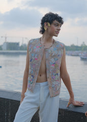 Introducing the Kantha vest, floral for him  and her. Effortlessly dress it down for a laid-back summer lunch or elevate the look with bold statement earrings for a chic twist. Staying true to craftsmanship and handwork,  this piece is a testament to the timeless beauty of Indian techniques.