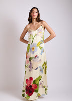 This gorgeous digitally printed slip dress exudes simple elegance, with the V-neck and the slightly flared bottom. Crafted with 100% pure Habotai silk and lined with soft, breathable Bemberg silk.