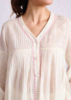This midi, buttoned-down dress featuring delicate hand embroidery and contrast piping detail is for those who believe in the simple beauty of white, the colour that contains all others. Made from a cotton silk blend and crafted with meticulous attention to detail, the hand embroidery adds a touch of artisanal craftsmanship. The dress comes with a lining for added comfort.